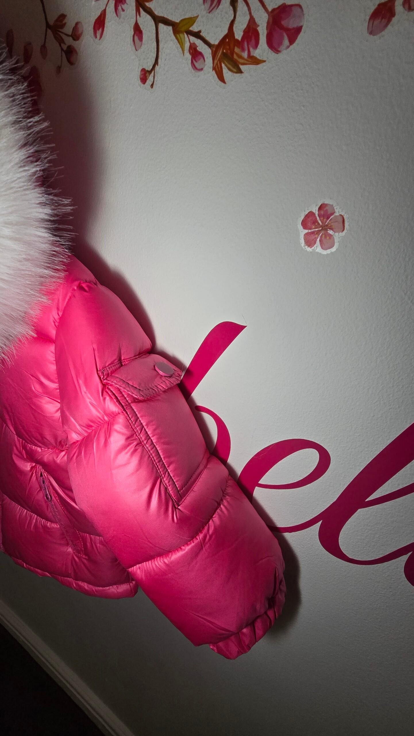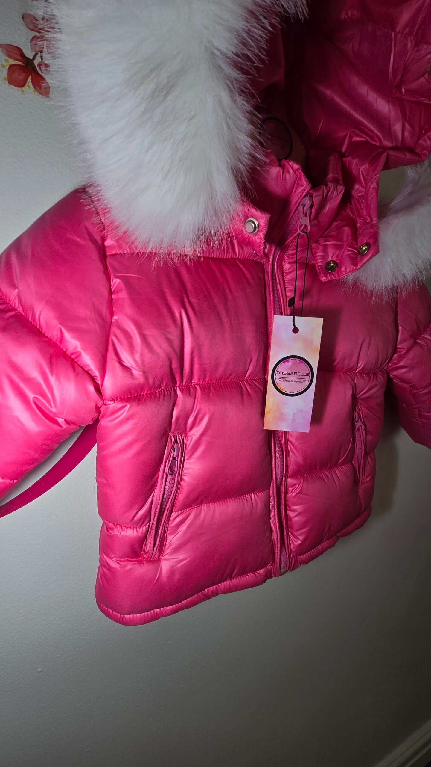 Girl fuchsia jacket with white fur