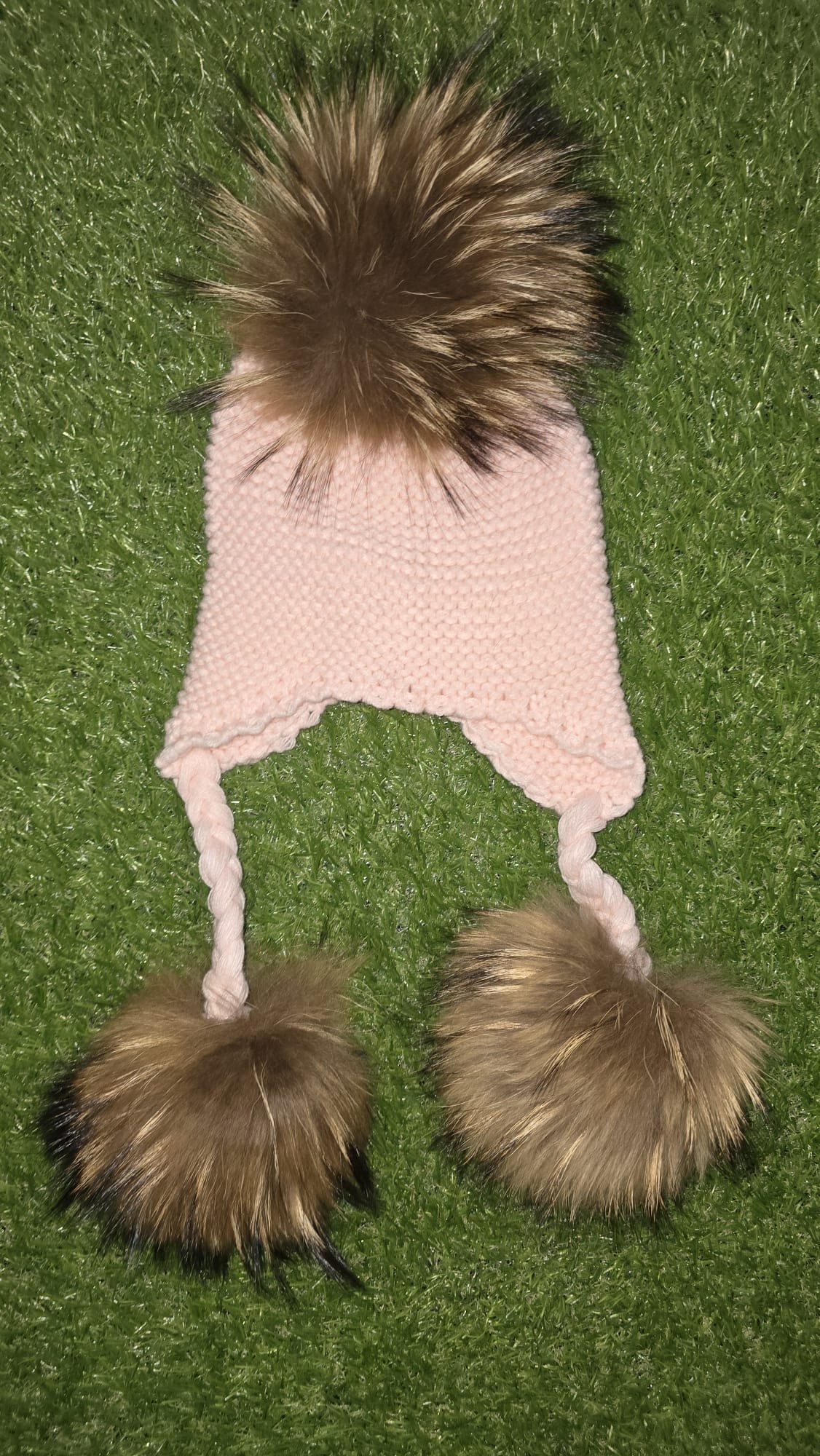 REAL FUR 3 POM POM PINK HATREAL FUR 3 POM POM PINK HAT